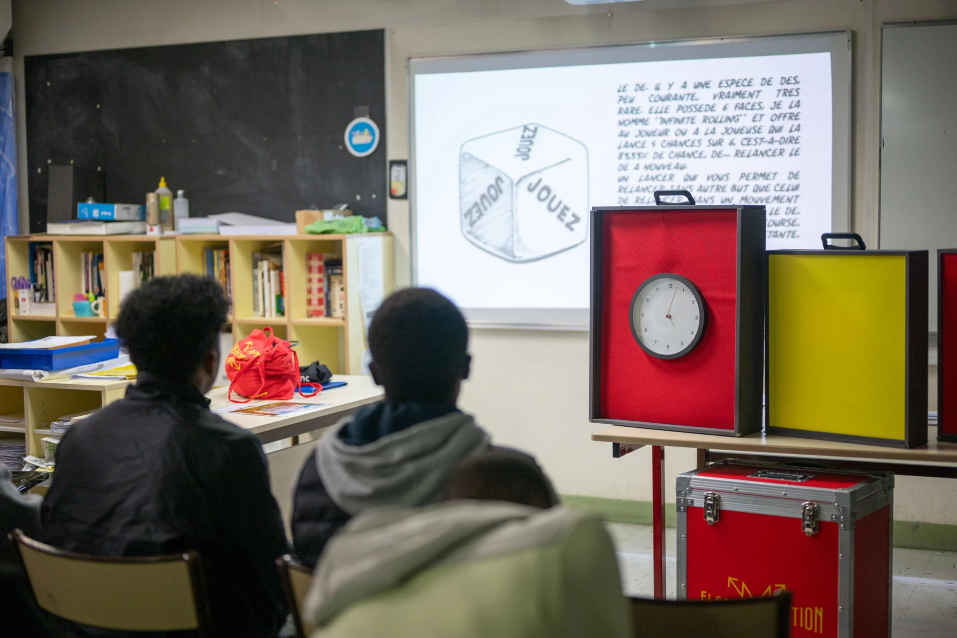 Flash Collection est un projet inédit conçu pour les lycées franciliens, à partir d’un module d’exposition itinérant réalisé par l’artiste Olivier Vadrot contenant une sélection d’œuvres de petit format. Les malles et les sacs à dos Flash Collection permettent ainsi une rencontre plus directe avec l’art contemporain en réinventant une nouvelle manière d’accéder aux œuvres, plus immédiate, ouverte et sensible. Avec Flash Collection, le Frac investit l’ensemble du territoire francilien afin d’aller à la rencontre des lycéennes et lycéens et notamment les plus éloignés des propositions culturelles.