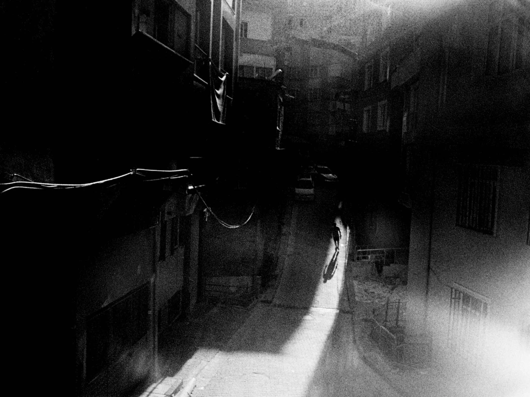 A la fin des années 1950 aux Etats-Unis est née une nouvelle attitude en photographie, qu’on a pris pour habitude de relier au mouvement littéraire du « stream of consciousness » (le « flux de conscience ») et à la beat generation. Deux photographes majeurs, William Klein et Robert Frank, ont porté, de manière assez distincte, cette approche marquée par un rapport différent à l’appareil photographique (démarche de prise de vue gestuelle et spontanée, décadrages, diagonales, absence apparente de visée…), à la matière des photographies (souvent granuleuse ou floue) et à un récit photographique devenu le résultat subjectif d’une errance sans destination. C’est clairement à cette lignée photographique qu’appartient Gilles Roudière, dont la présente exposition regroupe des images issues de deux séries, l’une réalisée à Istanbul (et intitulée initialement Sous de noirs soleils), l’autre au cours de plusieurs voyages à Cuba, nommée Trova. Il est frappant de constater que ces deux ensembles peuvent se rattacher chacun à l’une des deux approches photographiques initiées par William Klein et Robert Frank dans leurs travaux des années 1950. Avec la série sur Istanbul, c’est comme dans le travail de Klein à New York l’énergie et la puissance graphique qui dominent, la ville étant le lieu où la solitude du photographe se confronte à la multiplicité du visible et à la vie comme expérience collective. La ville est ici un espace brutal de collision des formes, des ombres et des lumières, un dédale de sensations et de rencontres où rêve et réalité se mêlent inextricablement. Ce sont la granulosité de la matière et les forts contrastes qui marquent ces images à la géométrie violente, où la vision du photographe semble aimantée par des entrées fracassantes de clarté et des ombres profondes. Leur captation donne forme à ce qui se rend subitement visible pour un instant, afin, comme le disait Garry Winogrand pour résumer sa propre pratique photographique, de « décrire le chaos de la vie ».