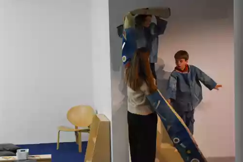 The open practice space is designed as a space for collective research and creation open to all. It accompanies exhibitions by offering practice sessions that are sometimes supervised but above all open to free and independent experimentation.