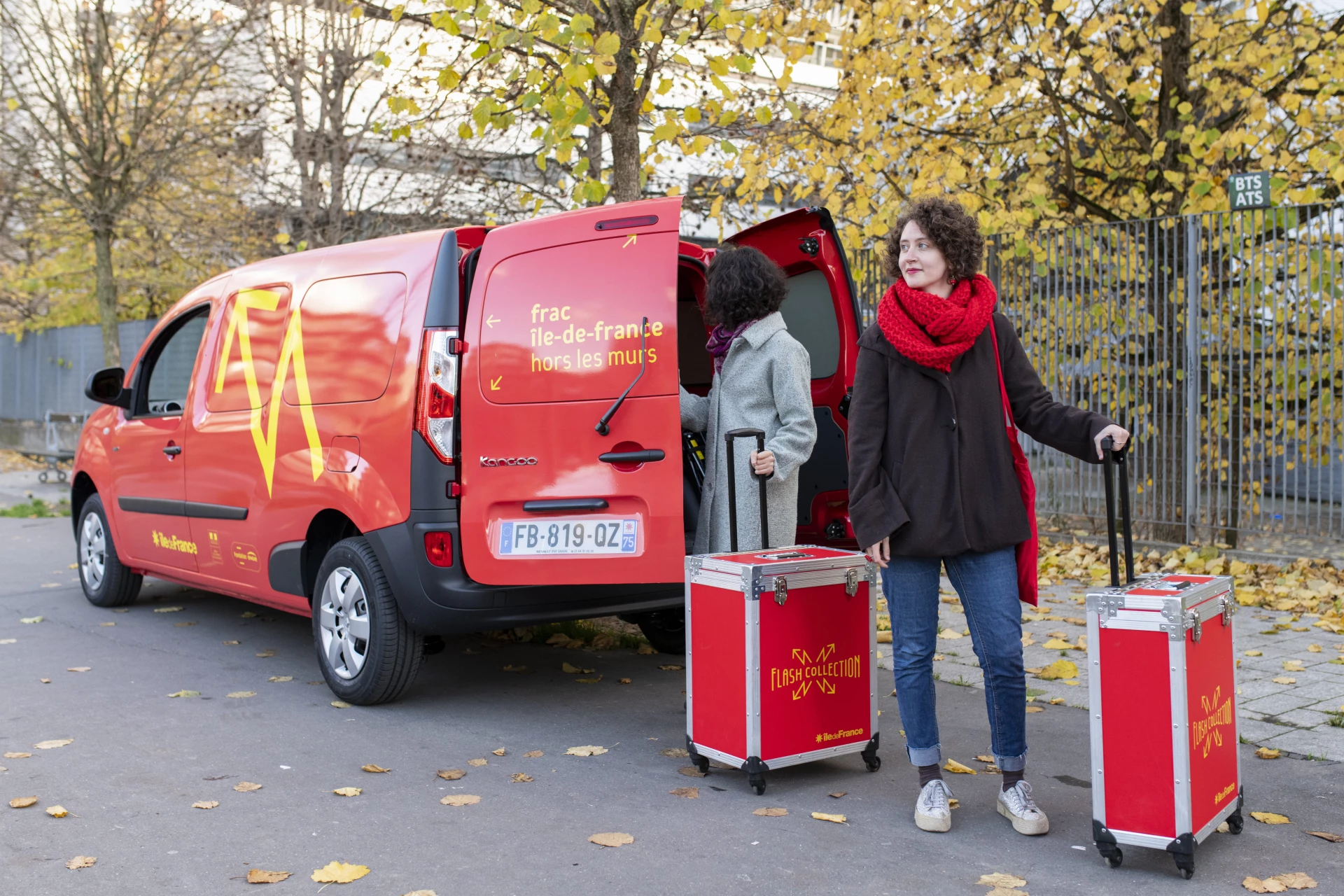 Flash Collection est un projet inédit conçu pour les lycées franciliens, à partir d’un module d’exposition itinérant réalisé par l’artiste Olivier Vadrot contenant une sélection d’œuvres de petit format. Les malles et les sacs à dos Flash Collection permettent ainsi une rencontre plus directe avec l’art contemporain en réinventant une nouvelle manière d’accéder aux œuvres, plus immédiate, ouverte et sensible. Avec Flash Collection, le Frac investit l’ensemble du territoire francilien afin d’aller à la rencontre des lycéennes et lycéens et notamment les plus éloignés des propositions culturelles.